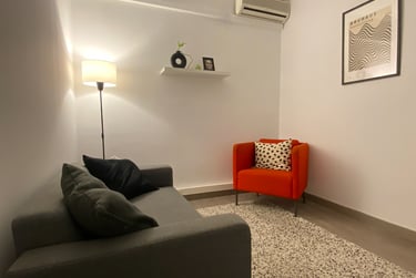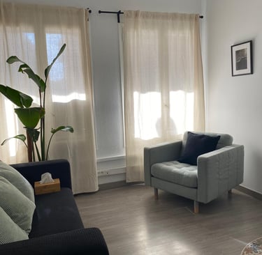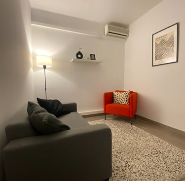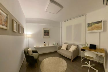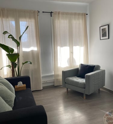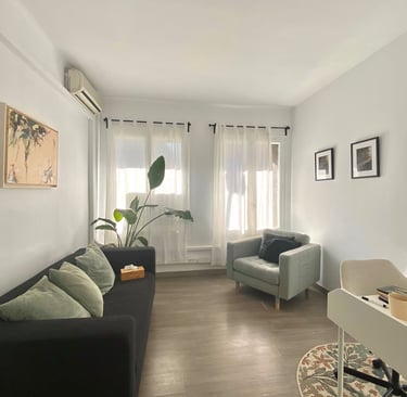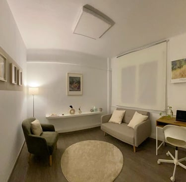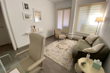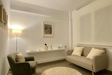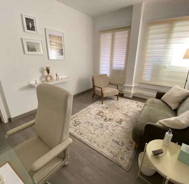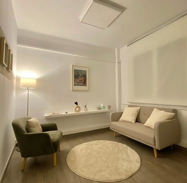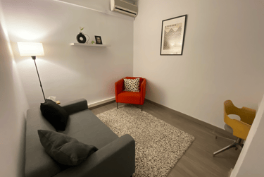 Equipada con butaca del terapeuta y sofá de dos plazas y media